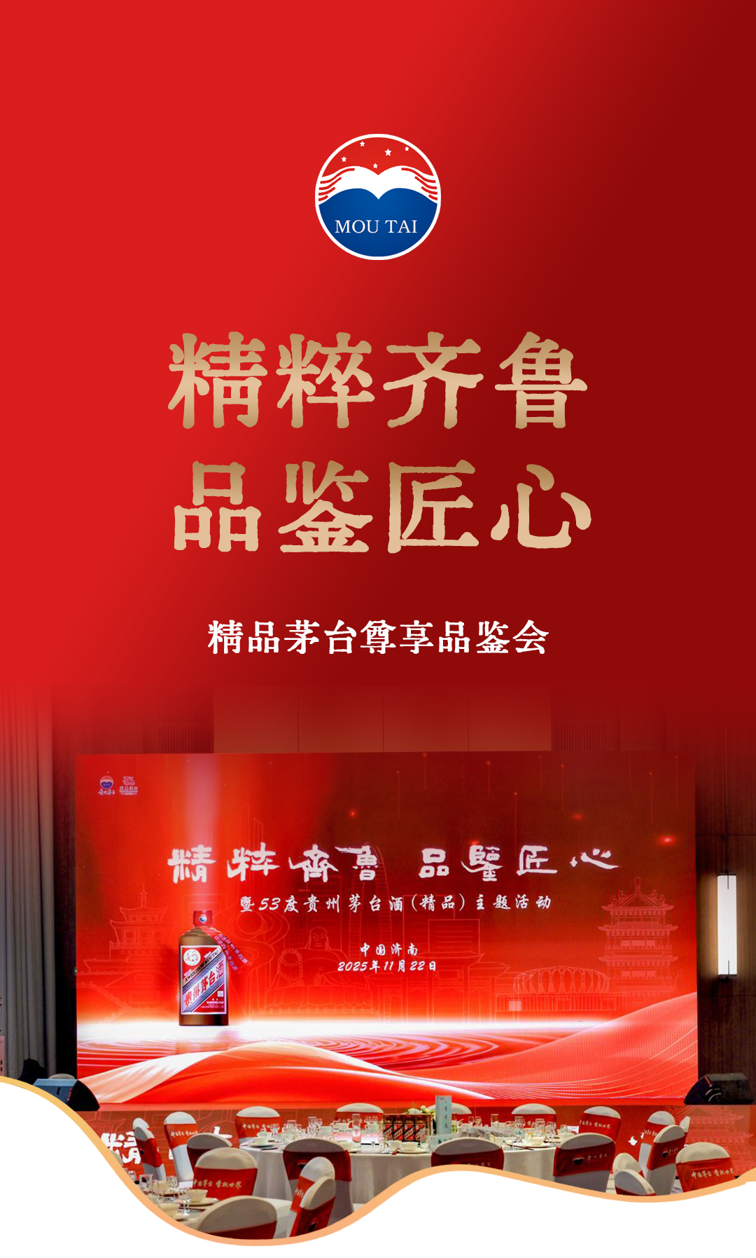 初冬时节,泉城济南迎来了一场别开生面的文化盛宴。2025年11月22日小雪节气当天,53度贵州茅台酒(精品)主题文化品鉴晚宴在济南隆重举行。本次活动邀请50余位泉城优秀企业家,以"精粹齐鲁,品鉴匠心"为主题,将茅台匠心酿造工艺与齐鲁非遗文化深度融合,为现场嘉宾呈现了一场"品茅香、赏鲁韵、悟匠心"的沉浸式文化体验。